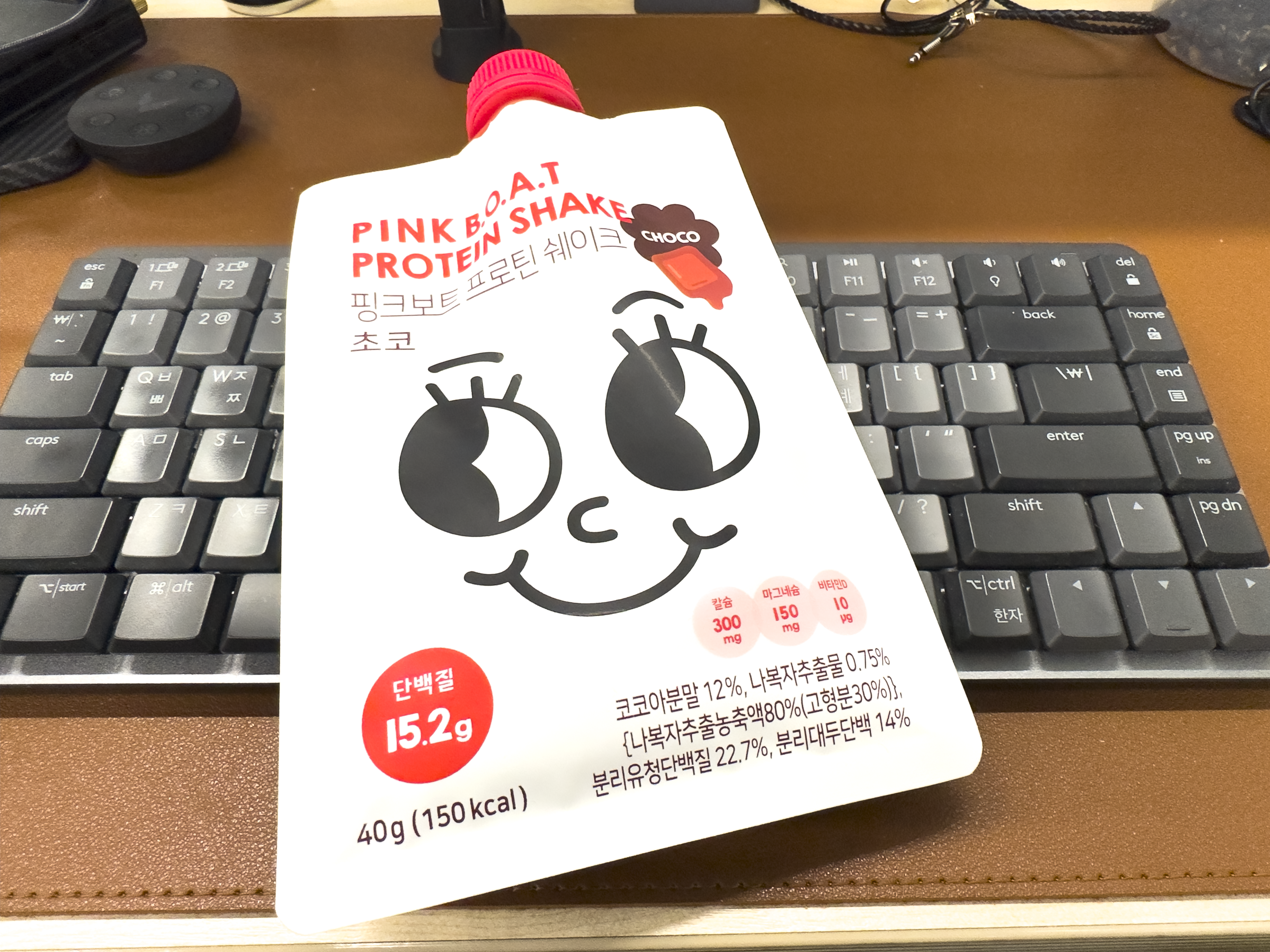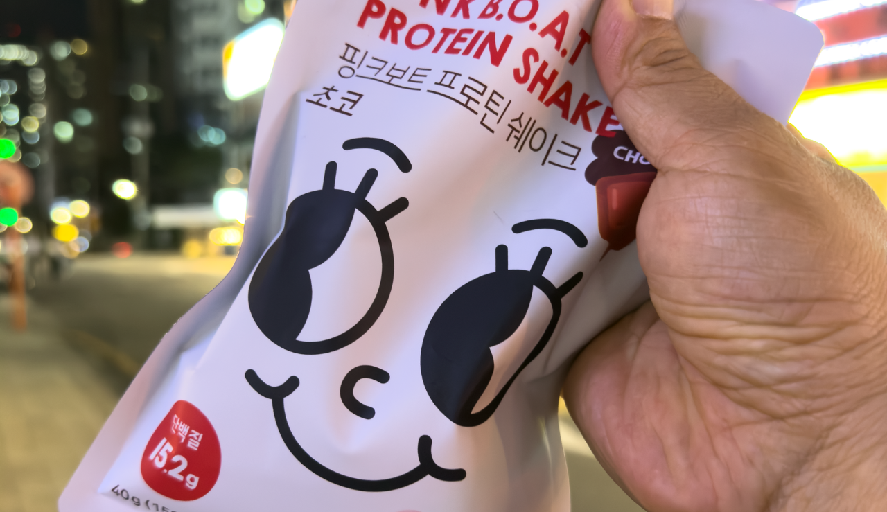 운동 시작 후 식사량은 식이 조절 때보다 절반 정도를 늘려 체력 저하를 방지하려고 했는데, 하루 1시간 반 가량의 운동에도 불구하고 체력이 떨어지는 것이 체감될 정도라 식사량을 더 늘려야 할 지 아니면 운동량을 줄여야 할 지를 고민하던 차에 옆 자리 직장 동료가 귀여운 캐릭터가 그려진 팩에 담긴 뭔가를 맛있게 먹고 있더군요? "핑크보트 프로틴 쉐이크?"
