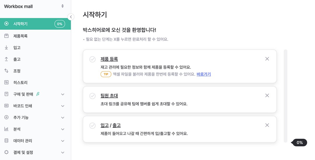 얼마 전, 박스히어로라는 물류 SaaS 서비스를 접한 적이 있습니다. 제가 나름 커머스 도메인 밥을 오래 먹었던 지라 물류에 대한 이해는 어느 정도 가지고 있는데, 제 기억에 물류는 복잡하고 어려운 영역이었습니다. 그런데 박스히어로 서비스를 접하며 느낀 첫 인상은 "물류가 이렇게 쉬운 영역이었나?!" 입니다. 일단 온보딩(onboarding)이 잘 갖춰져 있었고 고급 사용자와 캐주얼 사용자를 구분해서 서비스를 제공하고 있었습니다.