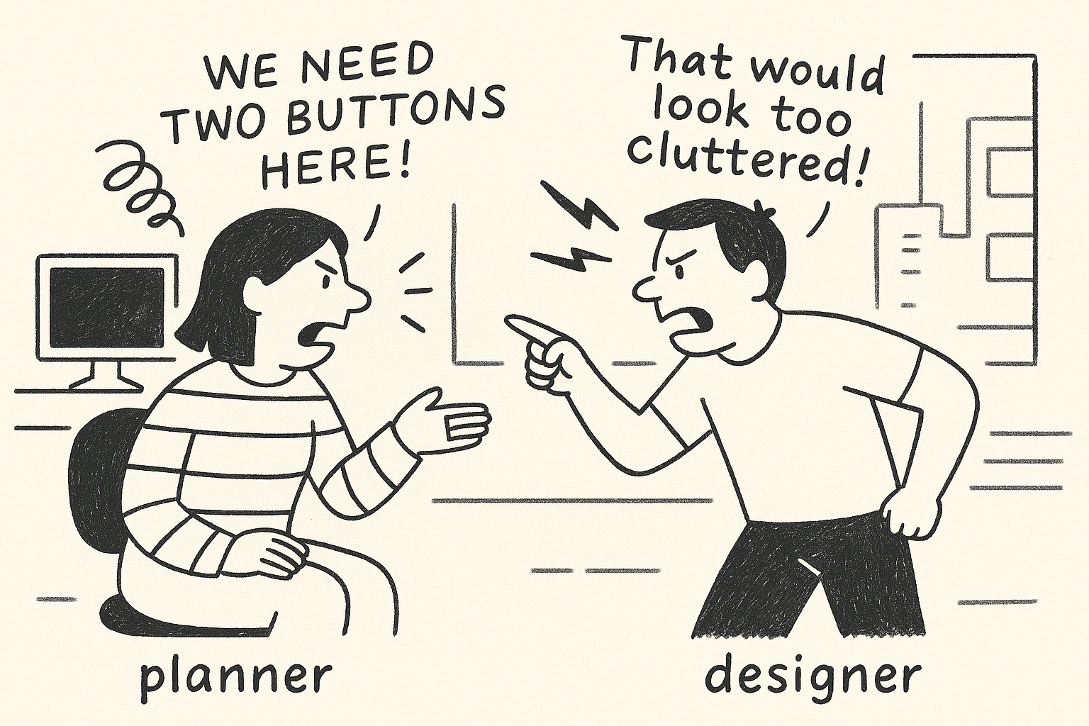 전 기능을 빠르게 정리해서 개발에 넘기고 싶었는데, 디자이너는 사용자 경험을 더 고려하자며