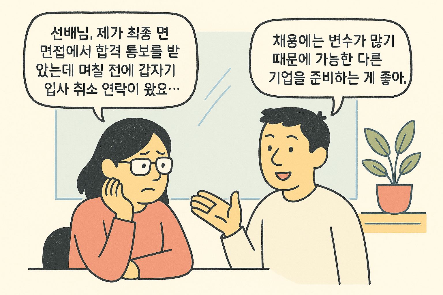 저 합격 통보받았던 회사에서 갑자기 내부 사정으로