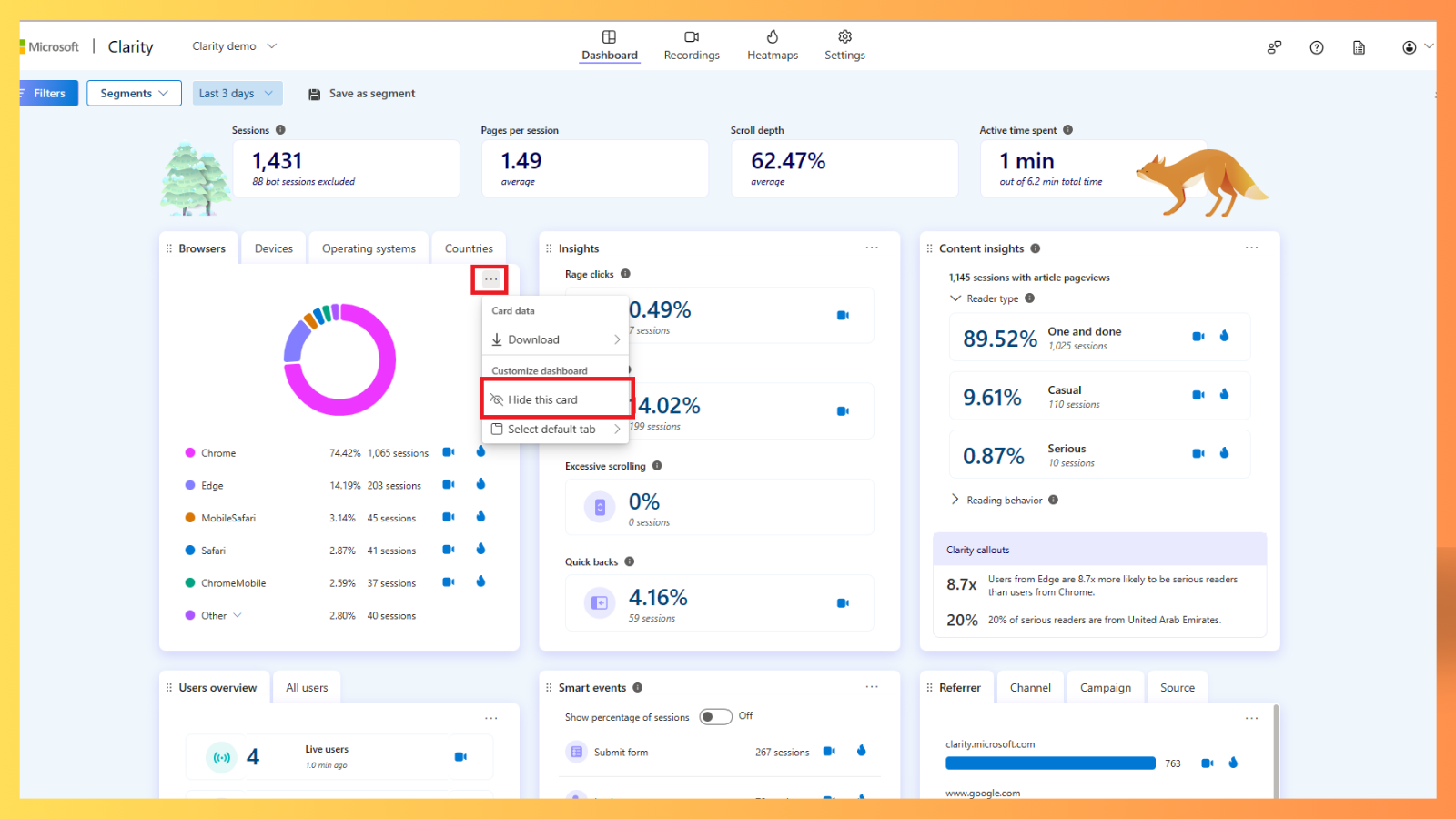 5. Clarity로 얻을 수 있는 인사이트 예시