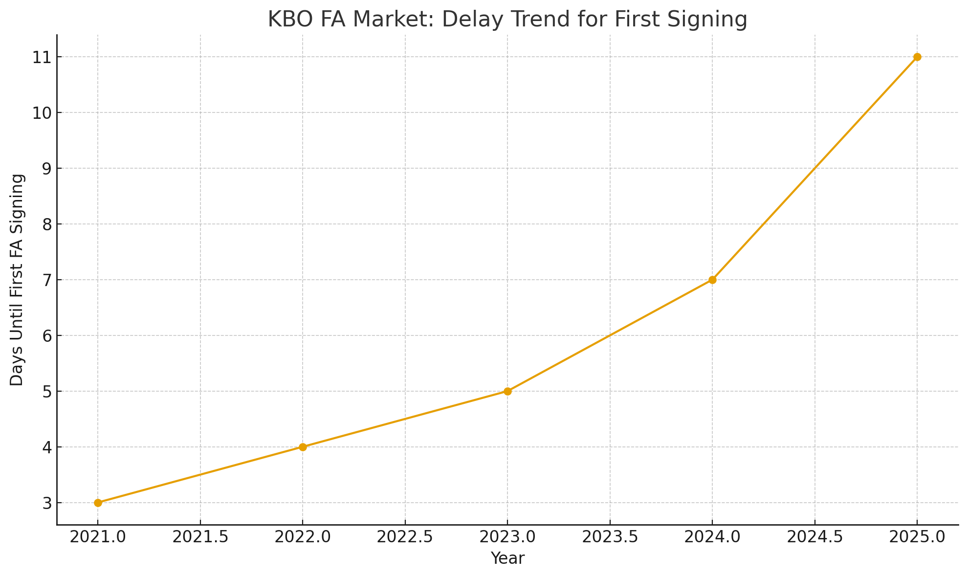 세 번째는 선수 측의 협상 전략 변화입니다. 과거에는 FA 선언 직후 빠르게 협상이 진행되는 경우가 많았지만, 최근 FA 시장은 전체적으로 가격 형성이 늦게 이루어지기 때문에 선수들도 서두르지 않으려는 경향을 보입니다. “시장을 좀 더 지켜보자”, “다른 구단의 움직임도 확인해 보자”는 심리가 자리하면서 협상 타이밍이 뒤로 밀립니다.